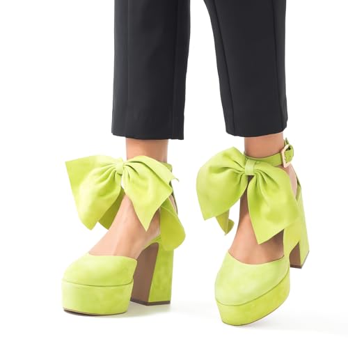 Platform Block Heel Sandals For Woman, Suede Bow Ankle Buckle High Heels, Round Toe Chunky Heeled Platform Sandals, Lovely Party Date Dress Heels For City Girls 4