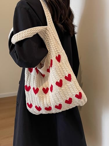 HOT ! SweatyRocks Women's Large Capacity Graphic Pattern Handbag Cute Top Handle Crochet Shoulder Bag