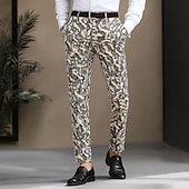 HOT ! Men's Snake Skin Pattern Dress Pants Trousers Mid Waist Casual Vintage Retro Outdoor Vacation Streetwear with Pockets Slim Fit Flat-Front Summer Spring Fall 3D Print Yellow