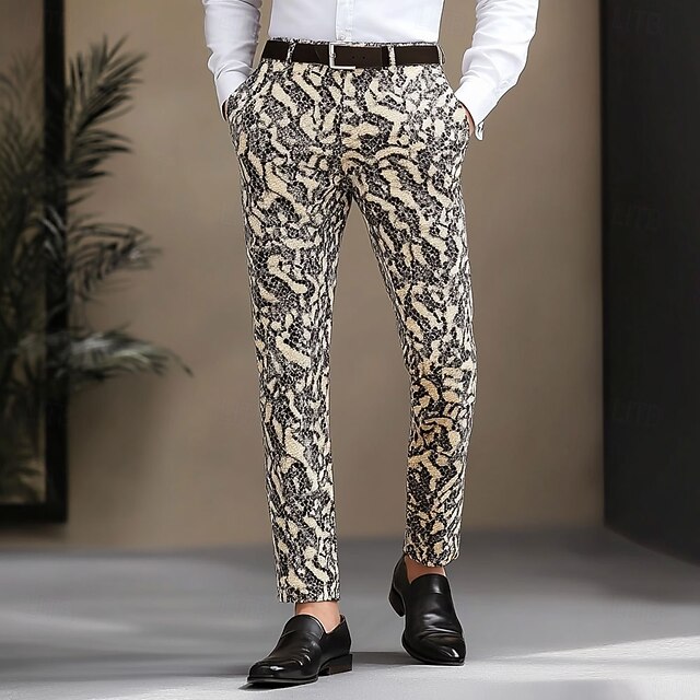 Men's Snake Skin Pattern Dress Pants Trousers Mid Waist Casual Vintage Retro Outdoor Vacation Streetwear with Pockets Slim Fit Flat-Front Summer Spring Fall 3D Print Yellow 1