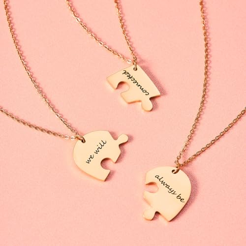 Ankiyabe 3 Sisters Heart Puzzle Piece Necklace We Will Always Connected Necklace Set 3 Best Friends Gift Bestie BFF Gift (We Will Always Connected-Rose Gold) 4