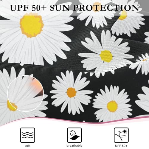 Girls One Piece Swimsuits Long Sleeve Swimsuit Zipper Bathing Suits White Flowers Daisies on Black 5