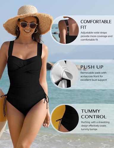 • 【Sexy Cross Color Block Design】 This tankini sets abdominal control swimsuit perfectly blends the charm of flirting with timeless elegance. The women's tankini features a Sexy Cross neck on the front, exuding a modern and fashionable vibe. Equipped with adjustable shoulder Color Block straps for a perfect fit. Detachable breast pads and swimsuits elegantly highlight the natural curves of the body. This tankini swimsuit is tailor-made for women who crave beachwear and is an ideal choice.