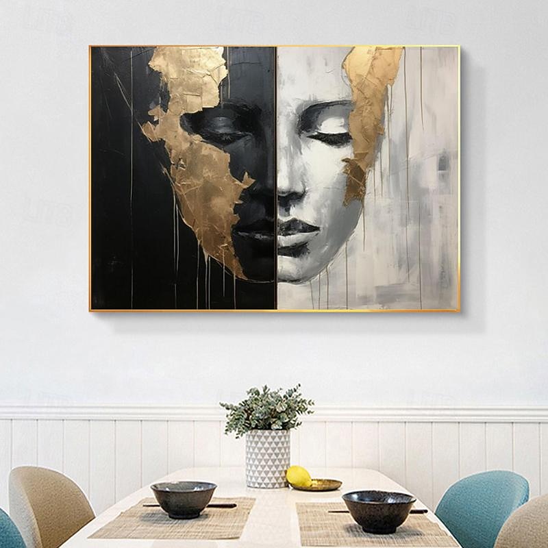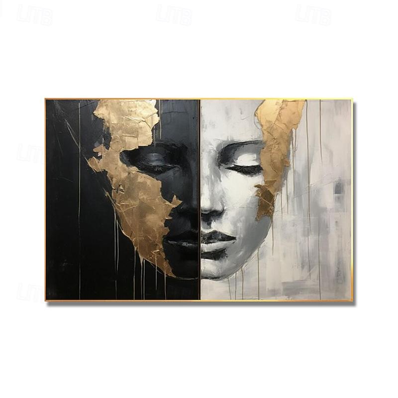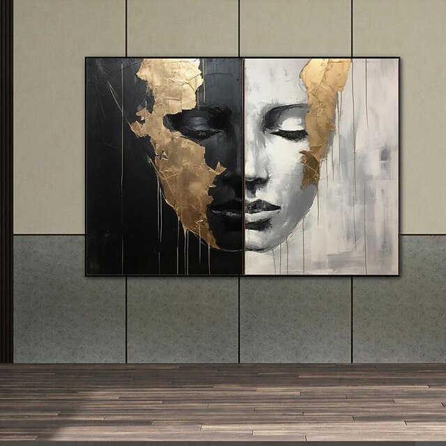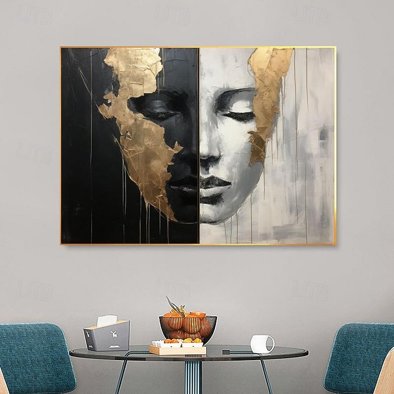 $131.99 - Hand-painted Abstract Girl Faces Paintings On Canvas Black White Painting Figurative Artwork Gold People Painting Minimalist Wall Art for Home Decor Stretched Frame Ready to Hang 2025. Shop for cheap Oil Paintings online? Buy at lightinthebox.com on sale today!