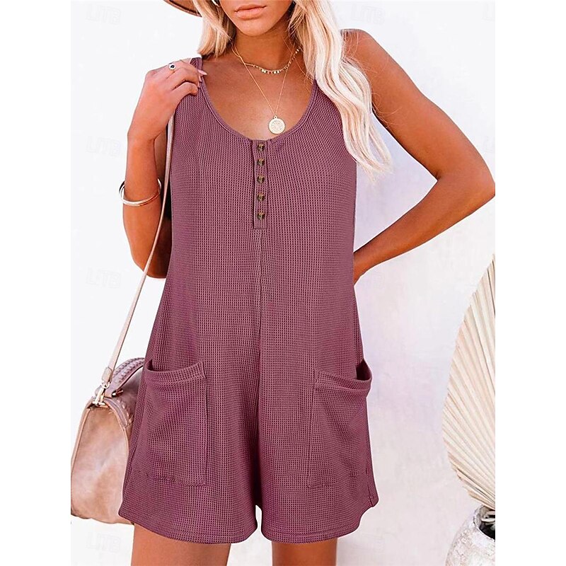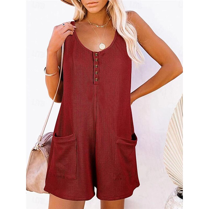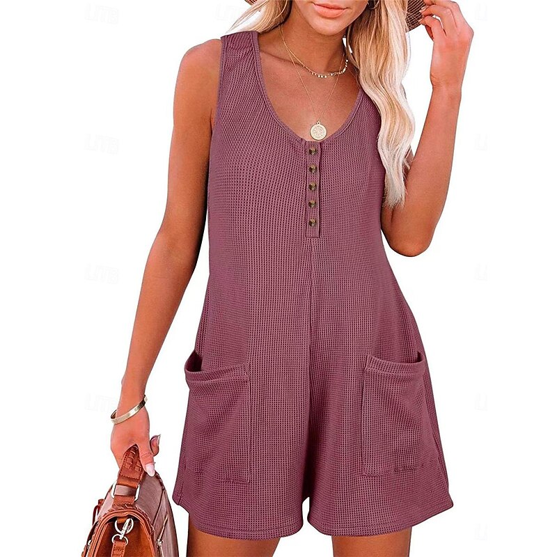 More information about Women's Normal Jumpsuit Streetwear Solid Color Sleeveless V Neck Buttons Pocket Street Daily Regular Fit Black Pink Wine Summer
