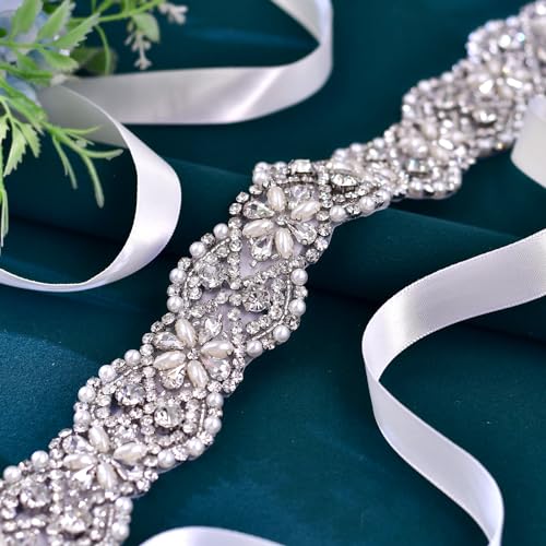 More information about A silver diamond wedding belt, beige silk ribbon, handmade bridesmaid dress for female guests, belt decoration S153