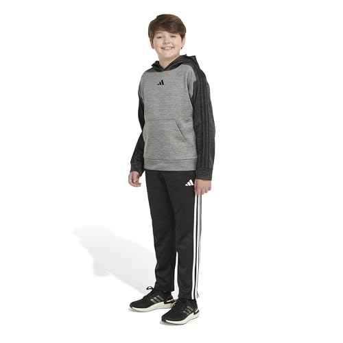 adidas Boys' Husky Pullover Hoodie Poly Hooded Sweatshirt, Black Heather 6