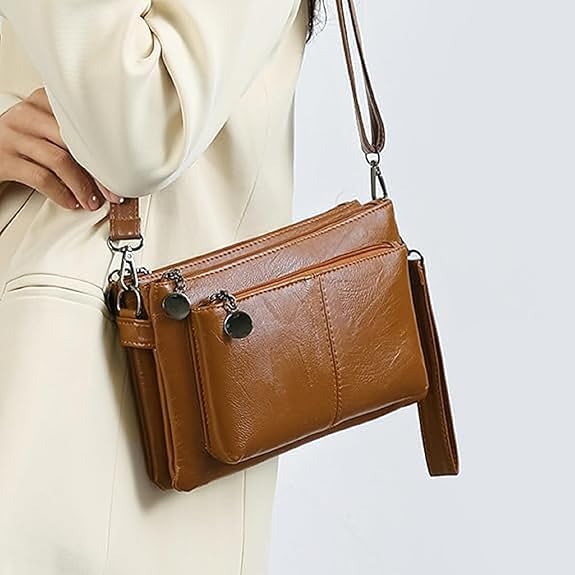 • High-Quality Soft Leather with Multi-Pocket Functionality: Crafted from premium soft leather, this multi-pocket crossbody bag is both elegant and durable. Smooth zippers provide quick and secure access to your items, while the structured interior keeps everything organized on the go