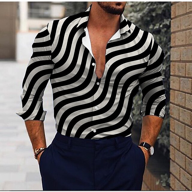 More information about Men's Striped Geometric Pattern Shirt Button Up Shirt Long Sleeve Party Designer Casual Vacation Daily Holiday Collar Shirt Collar Black Yellow Red Purple