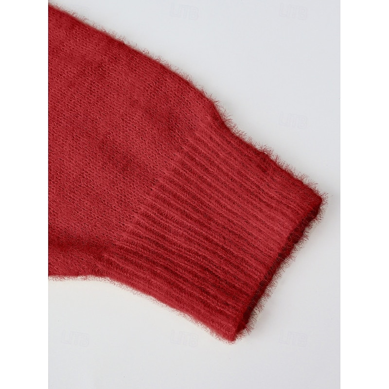 More information about Women's Sweater Pullover Sweatshirt Fuzzy Cozy T Shirt Plain Ribbed Knitted Casual Long Sleeve V Neck Tops Daily Going out Weekend Lace Oversized Red Fall Winter