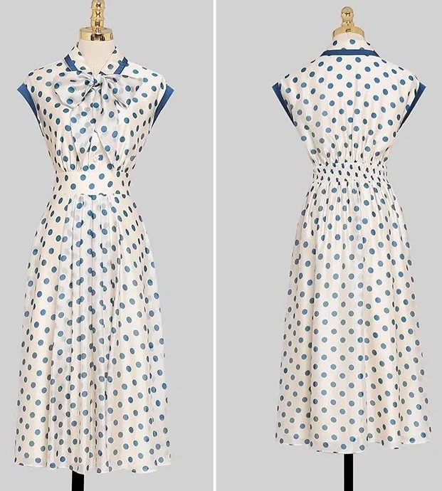 SPECIFICATIONSAge: Middle AgeBrand Name: JARODCN: GuangdongClosure Type: Single BreastedDecoration: BowDresses Length: Knee-LengthElasticity: Non StrechFabric Type: ChiffonFit Type: SlimGender: WomenMaterial: MicrofiberMaterial Composition: synthetic fiberModel Number: newNeckline: Turn-Down CollarOrigin: Mainland ChinaPattern Type: DotPlace Of Origin: China (mainland)Profile Type: TRelease Date: Summer 2022Season: Spring/SummerSilhouette: A-LINESleeve Length(cm): Short(4 - 16 Inch)Sleeve Style: RegularStyle: VintageType: RegularWaistline: empiresize_info: {sizeInfoList:[{length:{cm:86,inch:33.86},size:S,vid:-1},{length:{cm:90,inch:35.43},size:M,vid:-2},{length:{cm:94,inch:37.01},size:L,vid:-3},{length:{cm:98,inch:38.58},size:XL,vid:-4}]}Size Please compare the detail sizes with yours ,please allow 1-2cm differ due to manual measurement,thanks,(ALL measurement in cm and please note 1cm=0.39inchS:bust:86cm waist:64cm length:110cmM:bust:90cm waist:68cm length:111cmL:bust:94cm waist:72cm length:112cm XL:bust:98cm waist:76cm length:113cm
