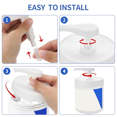 Pump Lid for CeraVe Moisturizing Cream 19oz (2Pcs) Universal Pump for 3.3inch Diameter Mouth, Cream Pump Dispenser Fits for CeraVe 16oz Jars When Cut Tube Short 4