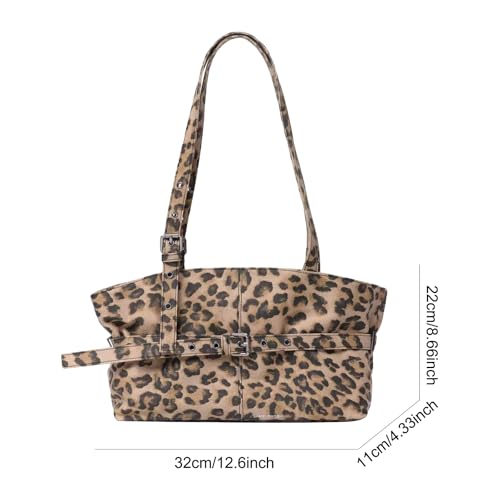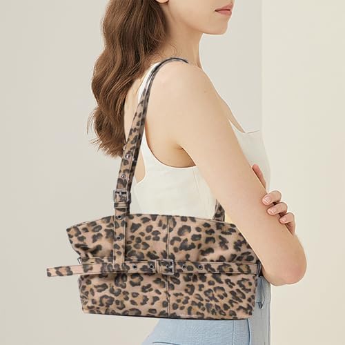 HOT ! PU Leather Shoulder Bag for Women, Vintage Leopard Print Tote Bag, Brown Purse, Top-Handle Handbag with Adjustable Strap