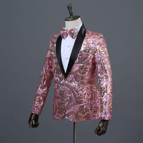 HOT ! Mens Sparkly Sequin Slim Fit Suit Jacket Shawl Lapel Blazer Lightweight One Button Sport Coat with Bow Tie