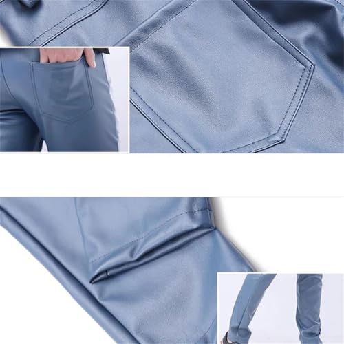Men's Skinny Fit PU Leather Pants Wet Look Stretch Slim Motorcycle Trousers 7