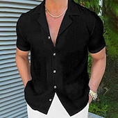 More information about Men's Shirt Linen Shirt Summer Shirt Beach Wear Button Up Shirt Plain Vacation Casual Black White Pink Blue Short Sleeve Camp Collar Summer Clothing Apparel