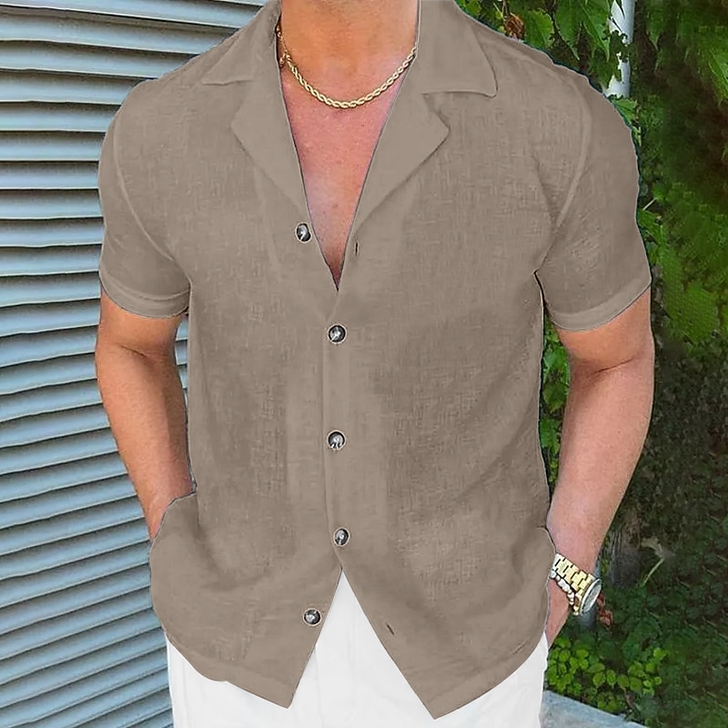 Highlights [Fabric] : This men's shirt is crafted from a premium blend of cotton and linen, ensuring a lightweight and breathable feel, perfect for summer wear. The fabric's soft texture and excellent breathability make it an ideal choice for staying cool during warm days. [Fit] : The shirt offers a tailored yet relaxed fit, providing both comfort and style. It drapes well over the body, offering room for ease of movement while maintaining a sleek and clean silhouette. [Design Highlights] : Featuring a classic camp collar, the shirt adds a touch of laid-back elegance to your summer wardrobe. The button-up design offers practicality and sophistication with a clean front look. Available in a range of colors including blue, brown, green, white, black, and pink, it caters to a variety of style preferences. [Occasions] : This versatile piece is suitable for a wide range of settings, including vacations, holidays, casual outings, daily wear, and even stylish streetwear ensembles. Whether you're headed for a relaxing day at the beach or a casual city stroll, this shirt makes a perfect fit. [Size Range] : The shirt comes in a variety of sizes from S to 3XL, ensuring a suitable fit for different body types. It offers flexible options to accommodate your preference for comfort and style.