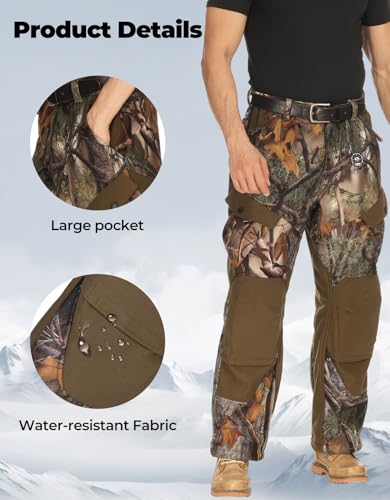 • Warm and Waterproof: This mens pants features two large front pockets to keep your hands warm. It is waterproof and breathable fabric, offers a soft and comfortable fit, and is machine washable for easy cleaning. Very suitables for hunting or outdoor working