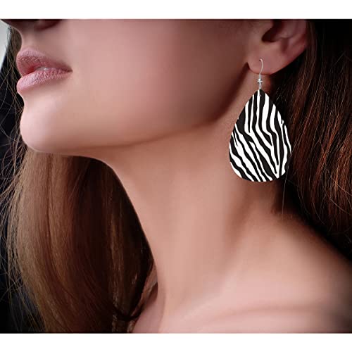 HOT ! Zokola Zebra Print Womens Leather Earrings, Black White Tiger Stripes Animal Zebra Skin Charm Teardrop Faux Leather Dangle Earrings Sexy Earrings For Party Holiday Jewelry