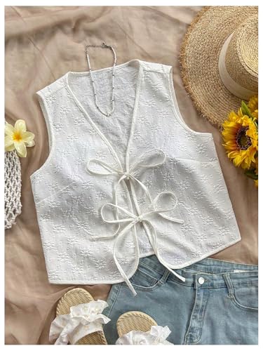 • Features: Lightweight cute vest for women, textured, bow tie front, sleeveless, v-neck, solid color, summer casual tank top
