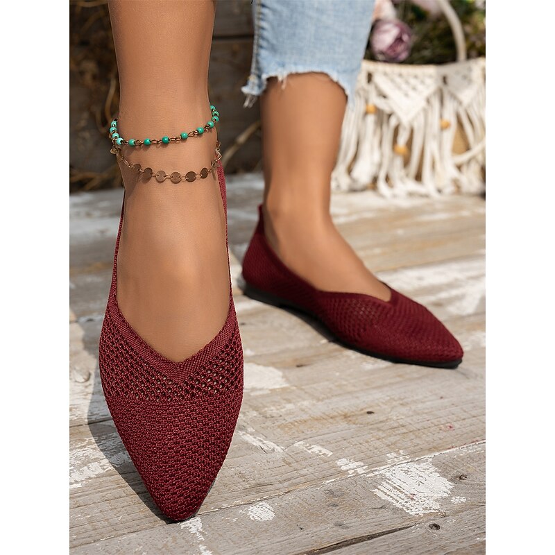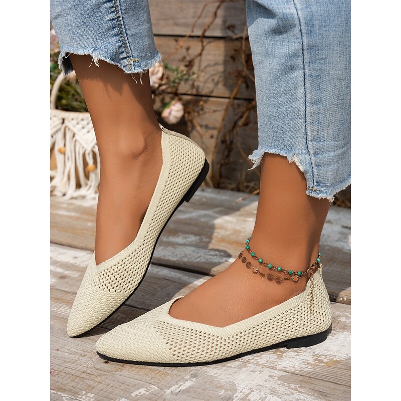 HOT ! Women's Flyknit Pointed-Toe Flats - Stylish Slip-On Lightweight Shoes for Summer & Daily Wear