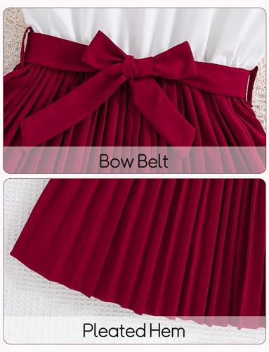 • [Features]-Pleated dress for girl is designed using ruffled round neckline, flyaway sleeves, A-line shape, pleated skirt, bow front, button closure, with removable belt, fashionable and classic