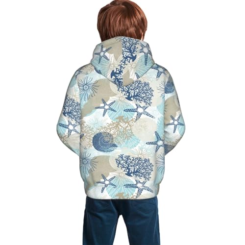 Corals and Seashells Kids Pullover Hoodies Boys Sweatshirts Girls Athletic Clothes with Pocket 7