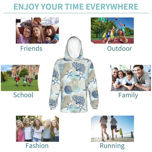 Corals and Seashells Kids Pullover Hoodies Boys Sweatshirts Girls Athletic Clothes with Pocket 4