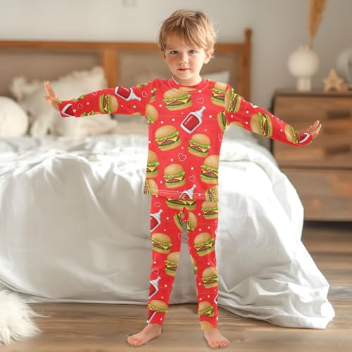 Pajama Sets Long Sleeve Food Hamburger Tomato Paste Soft Comfy Sleepwear 2 Piece PJS 3-8T 3