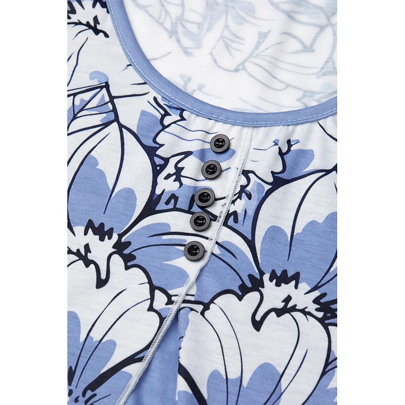 Women's T Shirt Floral Basic Short Sleeve Round Neck Regular Tops Holiday Weekend Buttons Print Pink Navy Blue Blue 8