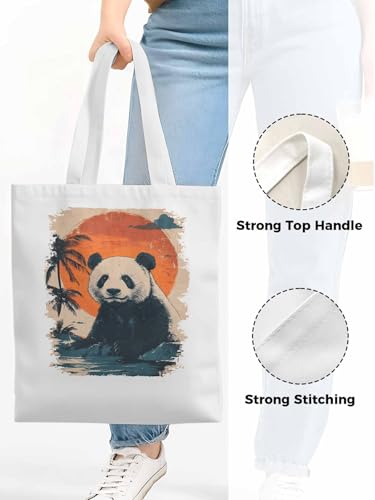 Canvas Tote Bags,Grocery Shopping Cloth Bag Panda Sun Tree Reusable Shoulder Bags Tote Bag for Travel Work Gym 4