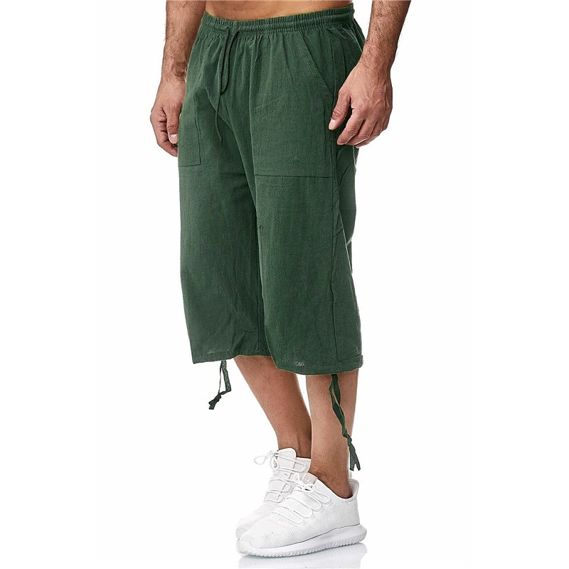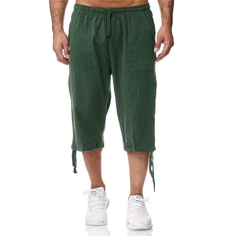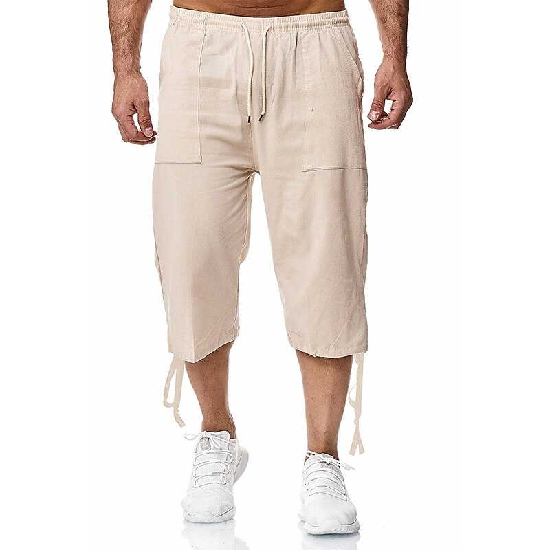 Men's Shorts Linen Shorts Summer Shorts Beach Shorts Capri Pants Drawstring Elastic Waist Front Pocket Plain Comfort Breathable Calf-Length Sports Outdoor Daily Stylish Casual / Sporty Blue Khaki 8