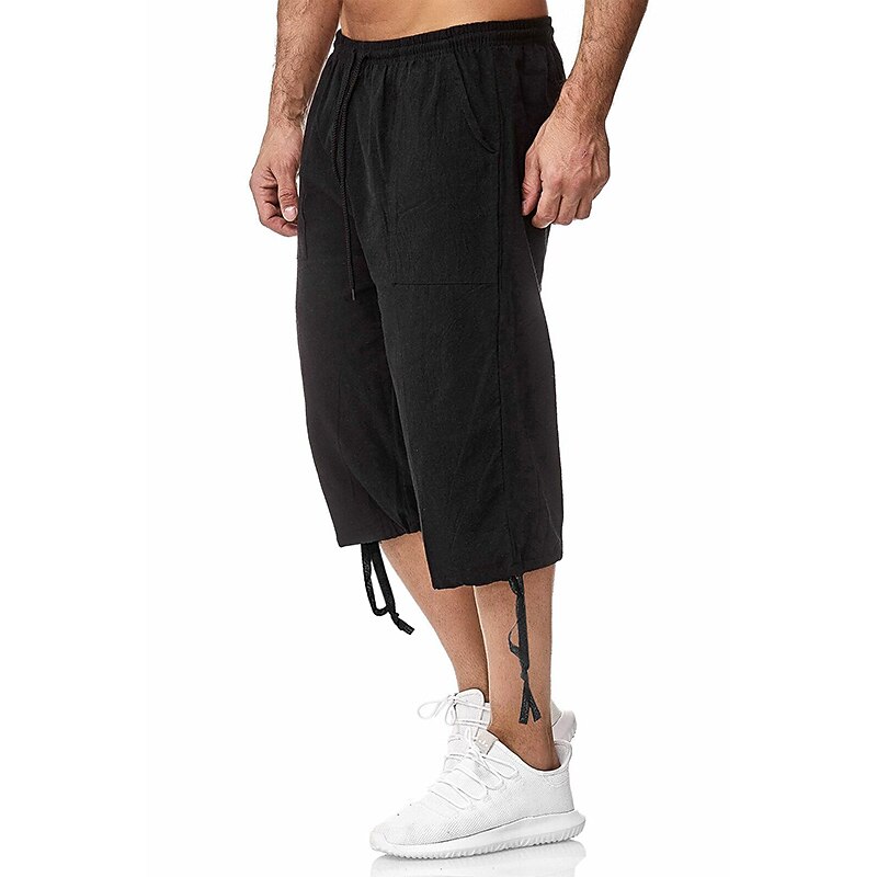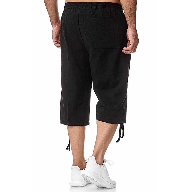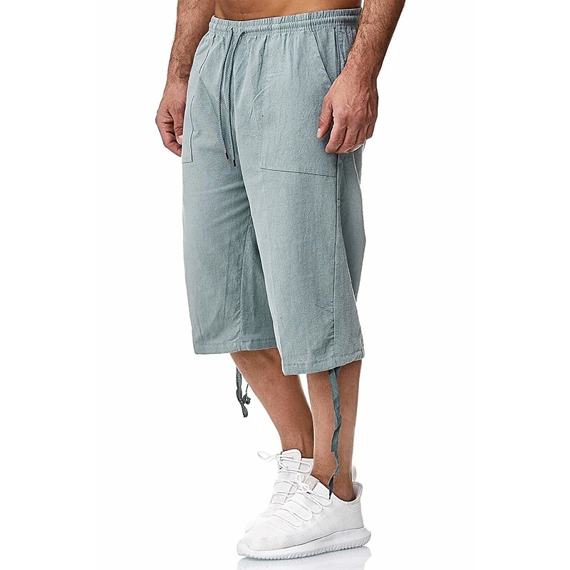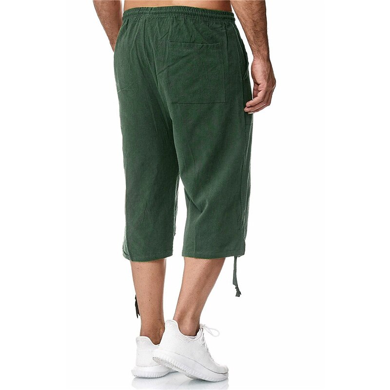 Men's Shorts Linen Shorts Summer Shorts Beach Shorts Capri Pants Drawstring Elastic Waist Front Pocket Plain Comfort Breathable Calf-Length Sports Outdoor Daily Stylish Casual / Sporty Blue Khaki 9