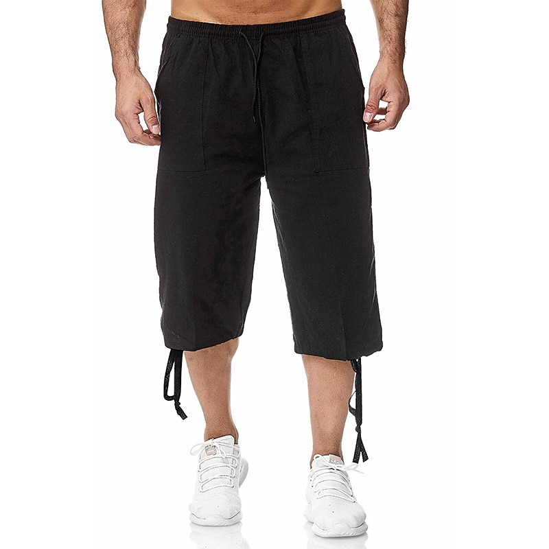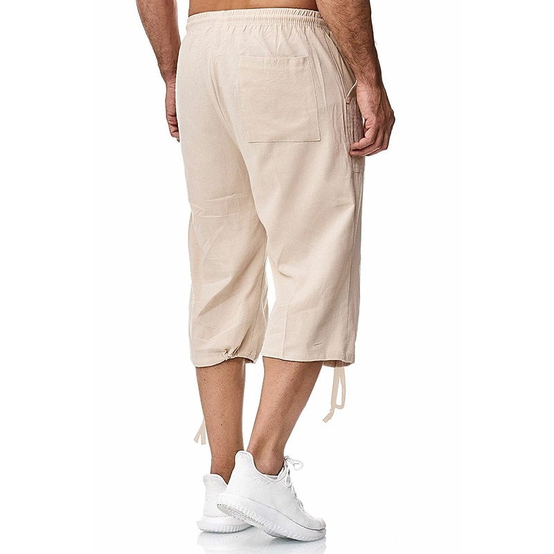 Men's Shorts Linen Shorts Summer Shorts Beach Shorts Capri Pants Drawstring Elastic Waist Front Pocket Plain Comfort Breathable Calf-Length Sports Outdoor Daily Stylish Casual / Sporty Blue Khaki 12