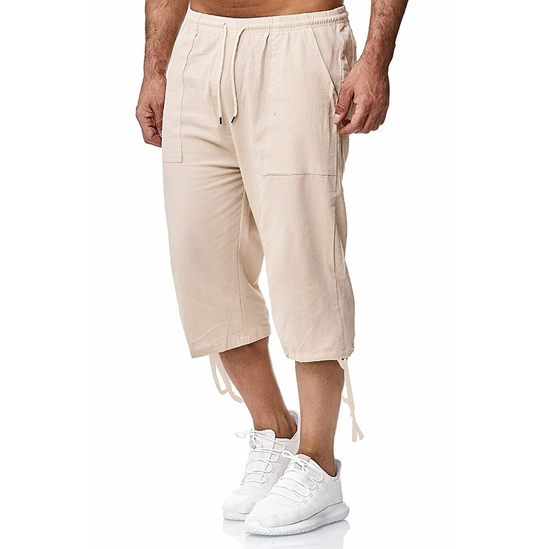 HOT ! Men's Shorts Linen Shorts Summer Shorts Beach Shorts Capri Pants Drawstring Elastic Waist Front Pocket Plain Comfort Breathable Calf-Length Sports Outdoor Daily Stylish Casual / Sporty Blue Khaki