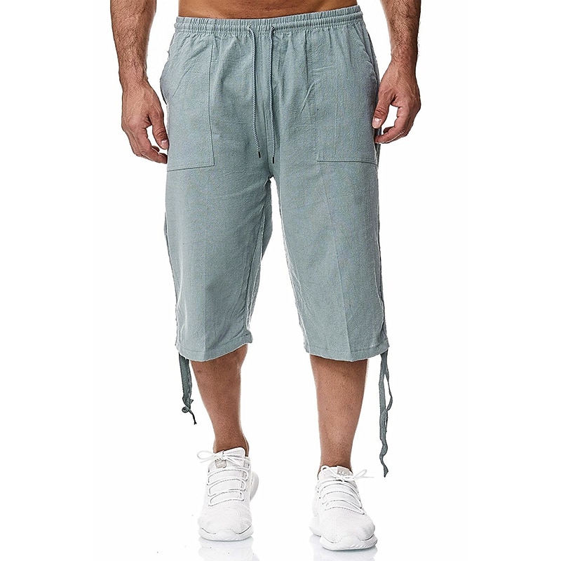Men's Shorts Linen Shorts Summer Shorts Beach Shorts Capri Pants Drawstring Elastic Waist Front Pocket Plain Comfort Breathable Calf-Length Sports Outdoor Daily Stylish Casual / Sporty Blue Khaki 20