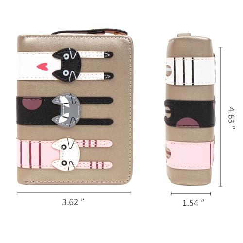 KOTORA Small Cute Wallet for Women Girls Short Bifold Clutch Bag Mini Cat Embroidery Zip Around Card Holder Coin Purse (Gold) 6