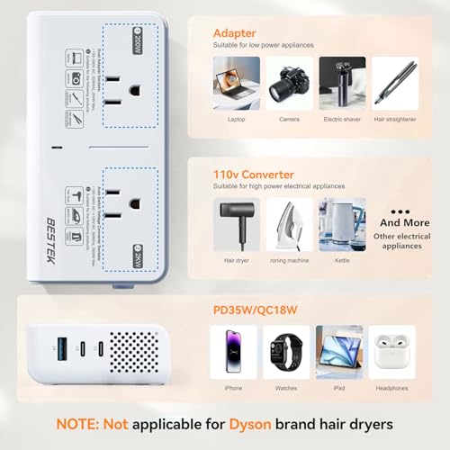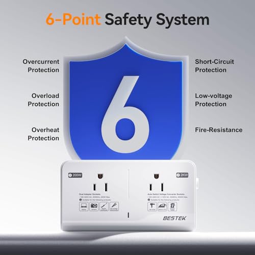 • Safety and Quiet: BESTEK is the only ETL certified brand in the converter market, and safety tested and upgraded hardware provides complete protection for you and your devices. This converter comes with over-current, over-load, over-heat and short-circuit protections. It works quietly, allowing you to enjoy an undisturbed sleep.