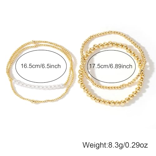 14K Gold Plated Beaded Bracelets Stack Set for Women,Stretch Boho Colorful Beads Ball Jewelry Friendship Summer Trendy 6
