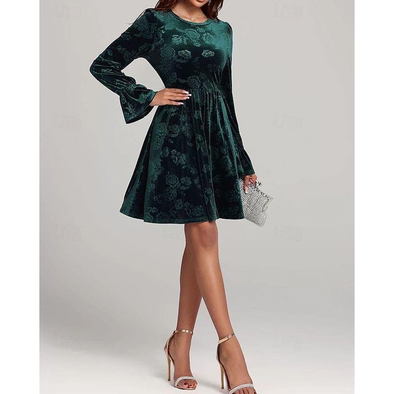 More information about Women's Midi Dress Velvet Dress Cocktail Dress Elegant Fashion Modern Outdoor Party Party Evening Wear Regular Fit Floral Plain Long Sleeve Crew Neck Dark Green Spring Winter Autumn