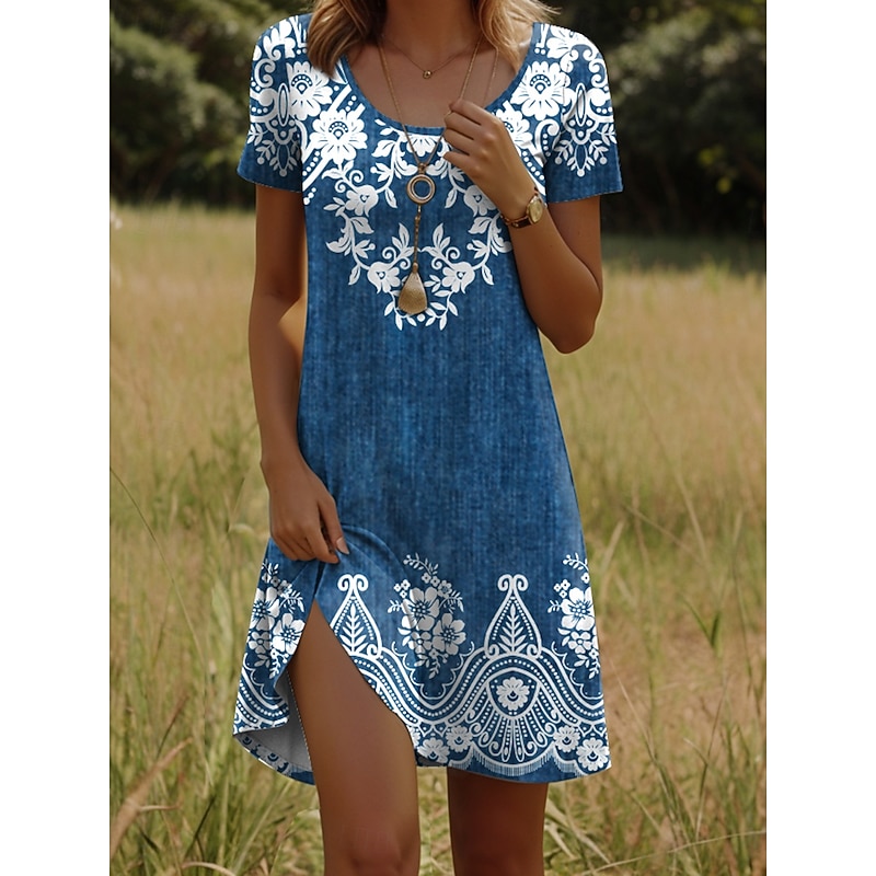 More information about Women's Mini Dress T Shirt Dress Tee Dress A Line Dress Summer Dress Casual Holiday Beach Regular Fit Floral Graphic Short Sleeve Crew Neck Blue Purple Green Dark Blue Summer Spring