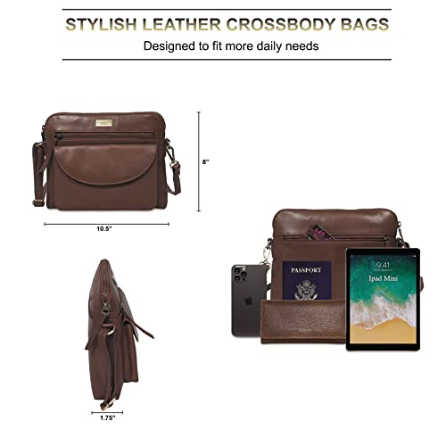 HOT ! Crossbody Bags for Women – Real Leather Purses with RFID Protection, Multiple Pockets and Adjustable Strap (10" X 8.5" X 1.5", Jean Brown Polished VT)