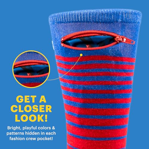 • Reinforced Zipper & Moisture Resistant Pocket - Our unique crew socks are made with durable polyester and colorful sweat proof pockets to keep the pocket contents drier, and each pair includes a reinforced ribbed welt to keep your socks up high, even when filled