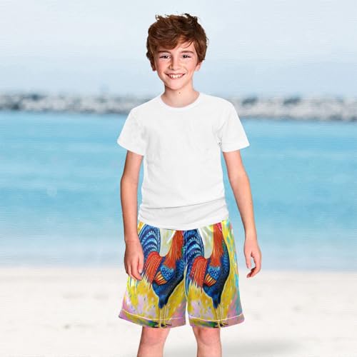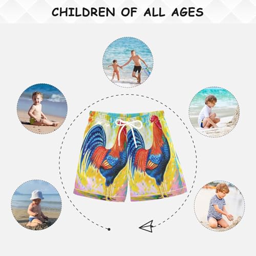Kids Swimming Shorts, Baby Swim Trunks 2t, Painting Rooster Colorful 4