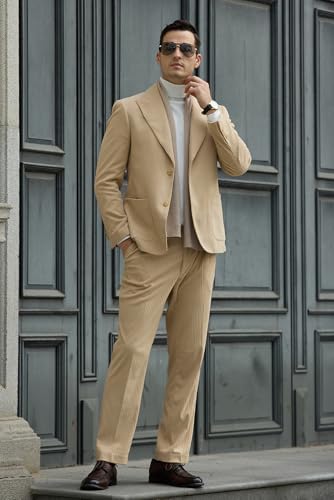 Mens Slim Fit Suits Corduroy Suit for Men 2 Piece Suit Jacket Blazer Pants Two Button Wedding Prom Tuxedo Suit 2