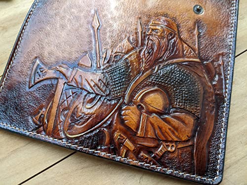 Men's 3D Genuine Leather Wallet, Long wallet, Biker wallet, Hand-Carved, Hand-Painted, Leather Carving, Custom wallet, Personalized wallet, Viking 1