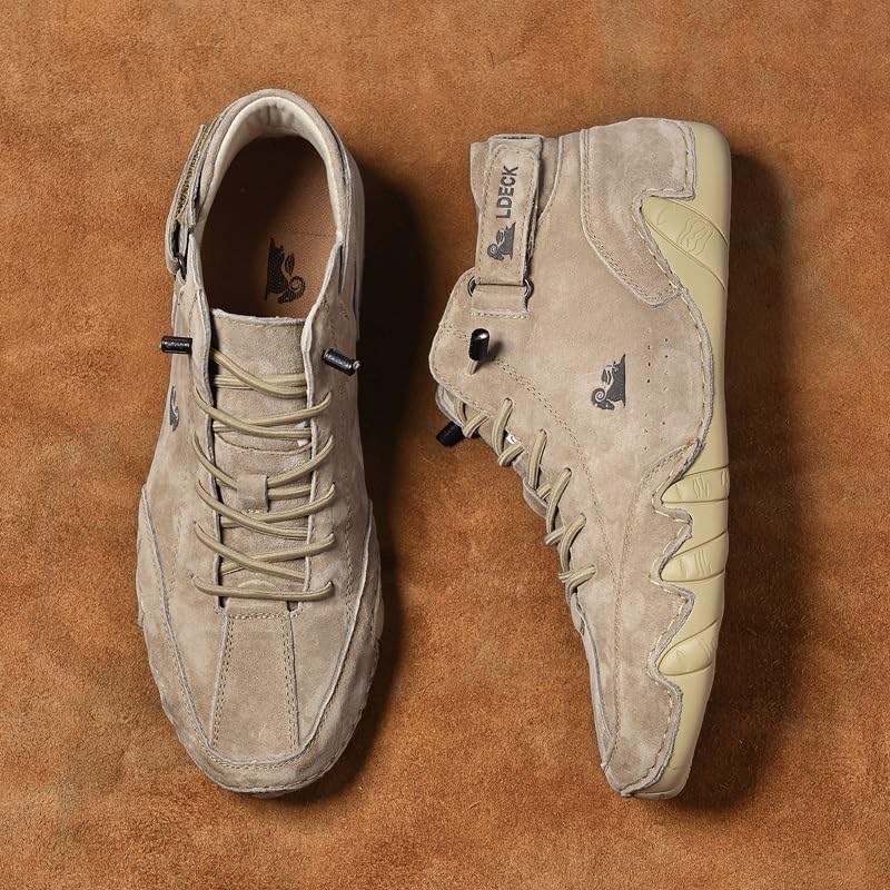 More information about Men's Italian Handmade Suede High Boots, Beck Shoes Waterproof Outdoor Non-Slip Lightweight Casual Sneakers Barefoot Walking Shoes Chukka Driving Boots(Khaki Low-top,US 9-9.5)