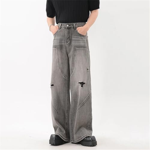 High Street Men’s Denim Pants, Solid Color, Deconstructed Holes Design, Loose Fit Trousers 4