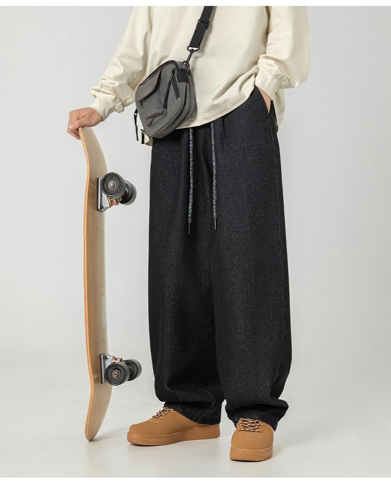 More information about Men's Baggy Jeans Casual Wide Leg Hip Hop Elastic Waist Drawstring Denim Pants Streetwear Skateboard Pants