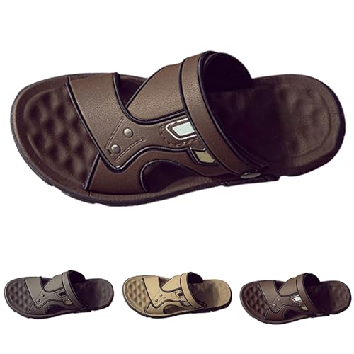 HOT ! Men's Leather Casual Flat Sandals with Adjustable Buckle Open Toe Slip-On Beach Sandals Summer Wide Width Walking Slides